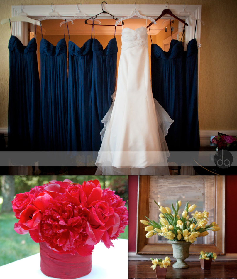 Navy dresses are a go to color for bridesmaid dresses and thought of as a calming color!
