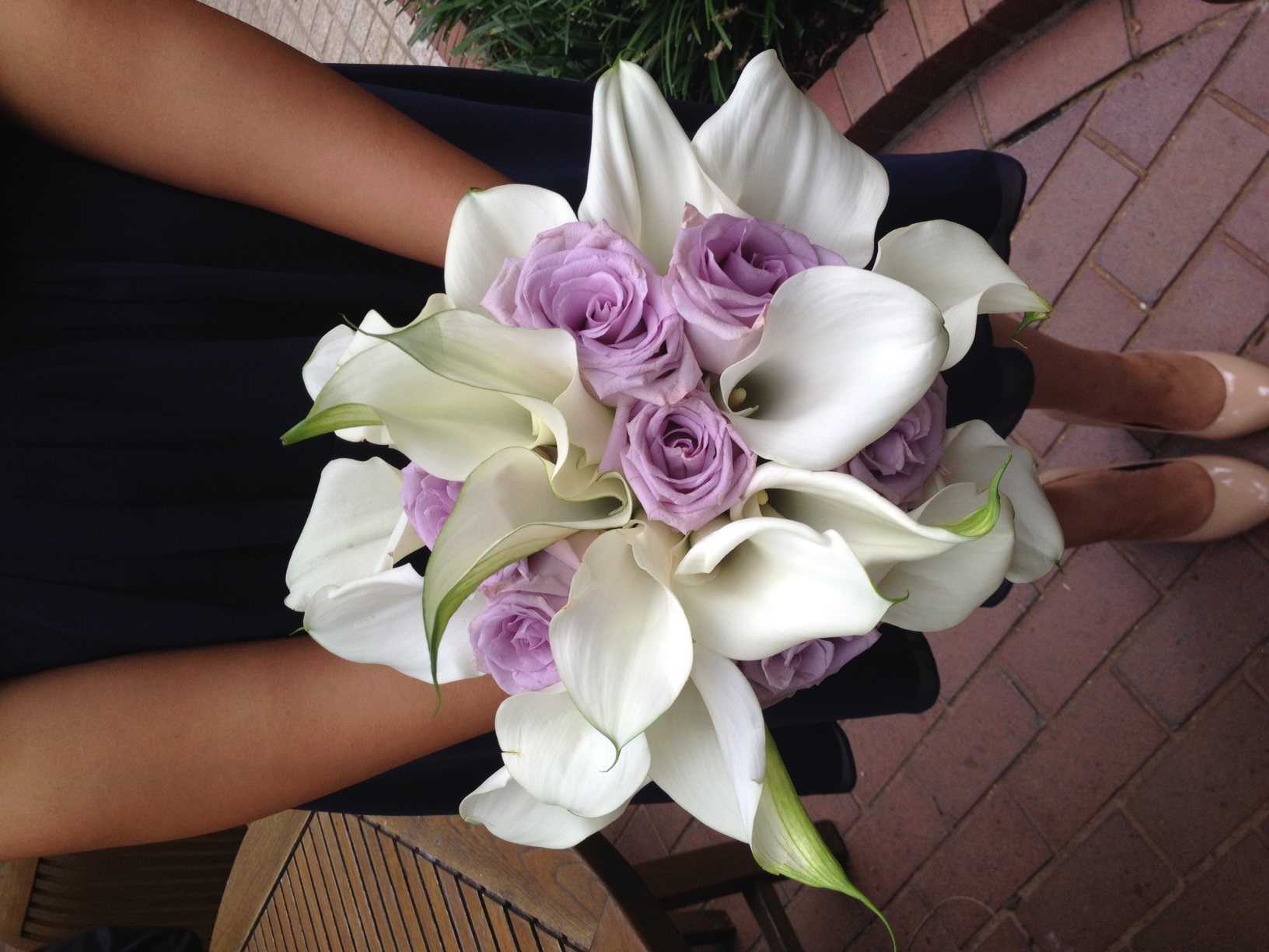 Then her pretty bridesmaids bouquets were a mix of white mini calla lilies with lavender roses!