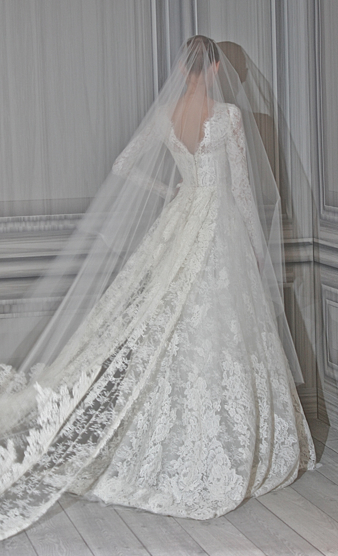 Over the next few weeks we will see more of the royal wedding. While I was at Bridal Market this Spring, the designer that really nailed it in her prediction of Princess Catherine’s gown was Monique Lhuillier. While many designers were predicting lots of lace, out of all the designers, Monique truly captured the essence of what Princess Catherine’s gown would look like. Here is a photo from one of the gowns from her Spring 2012 Collection: