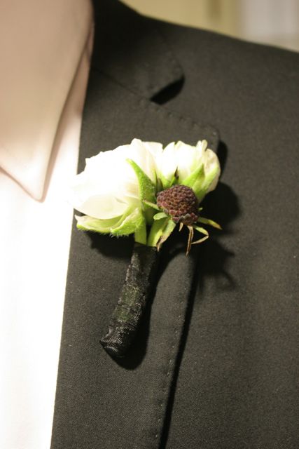 The groomsmen all wore ranunculus with scabiosa accents.