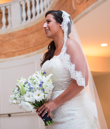 The bride loved lilies and they were everywhere at this wedding!  Her bouquet was a gorgeous white bouquet with lilies, stock, lisianthus and delphinium with touches of blue delphinium.  The bridesmaids were similar with accents of stargazer lilies.